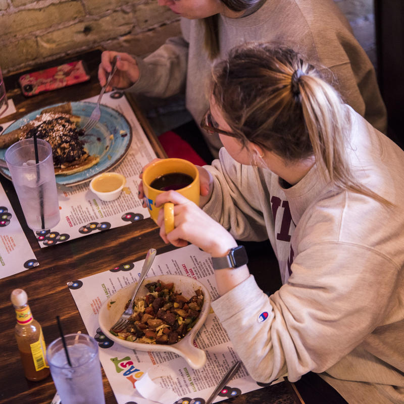 One of the best breakfast places in town. My buddy Troy swears by the pancake sliders but I like the steak and eggs, so I don't know anything about the sliders but Troy is normally trustworthy. Will be back. Music is great, reminds me of my high school days.